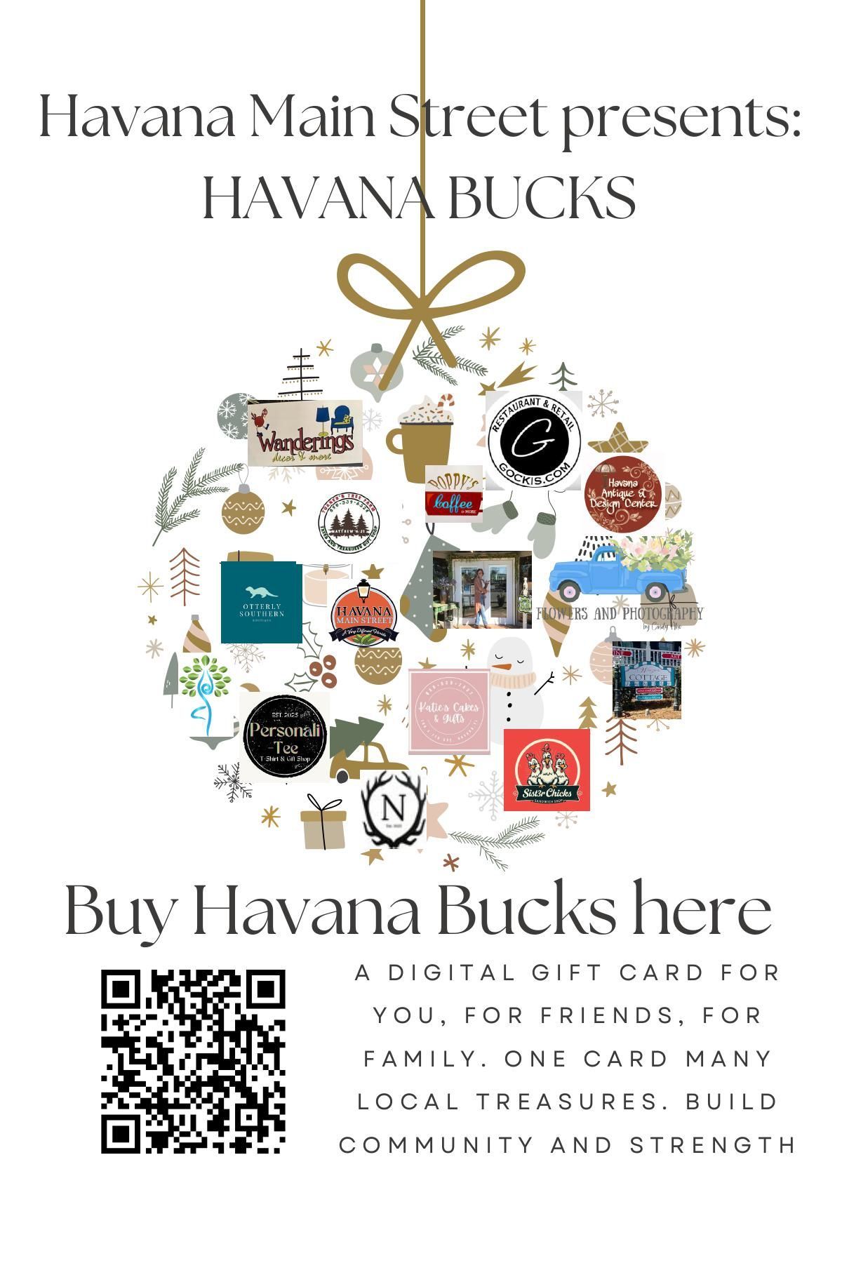 Every time a Havana Bucks card is used, those dollars stay right here at home— helping our small businesses thrive and our downtown stay strong.